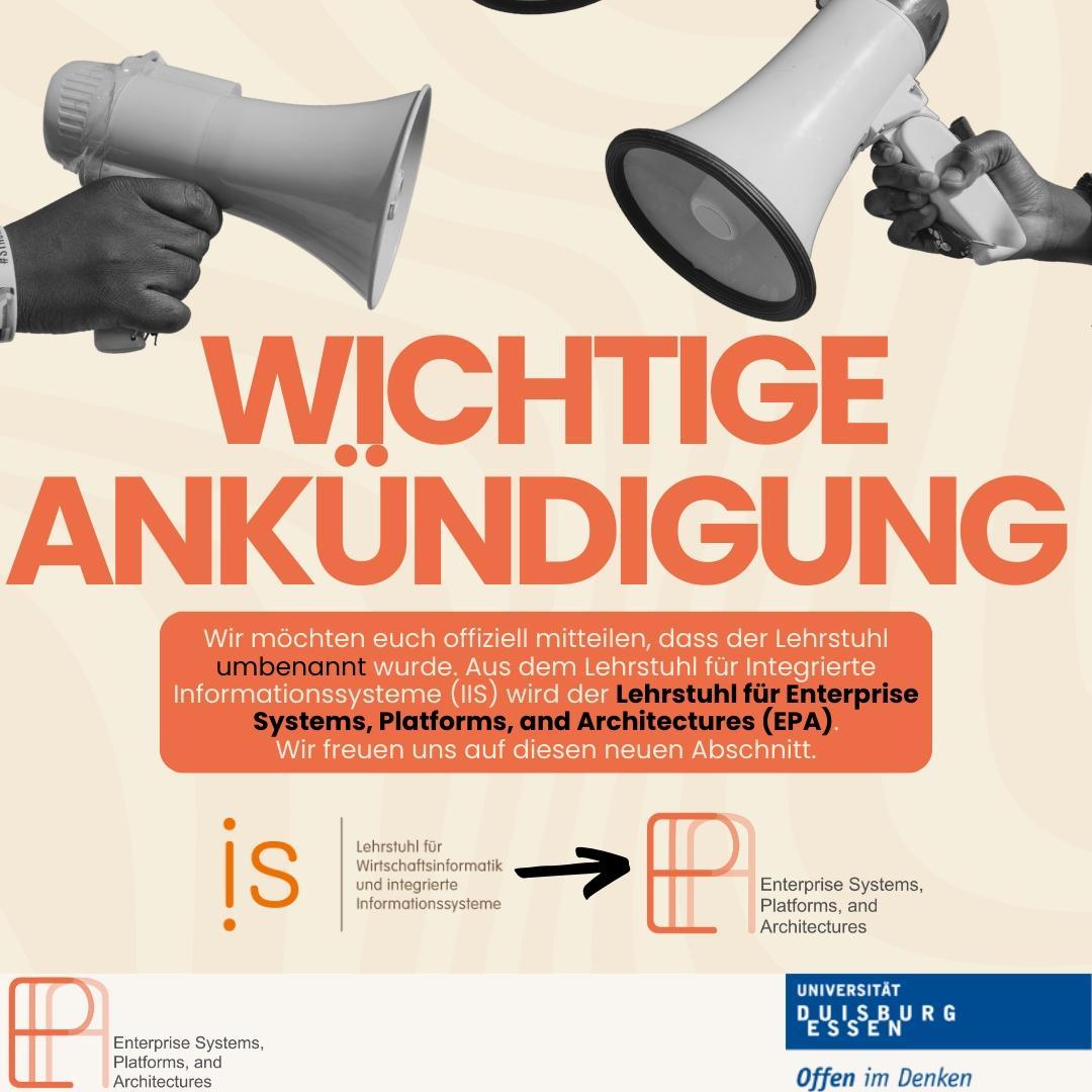 Herr Prof. Dr. Schütte und die Mitarbeiter des EPA-Lehrstuhls bieten folgende Sprechstunden für die Studierenden an
