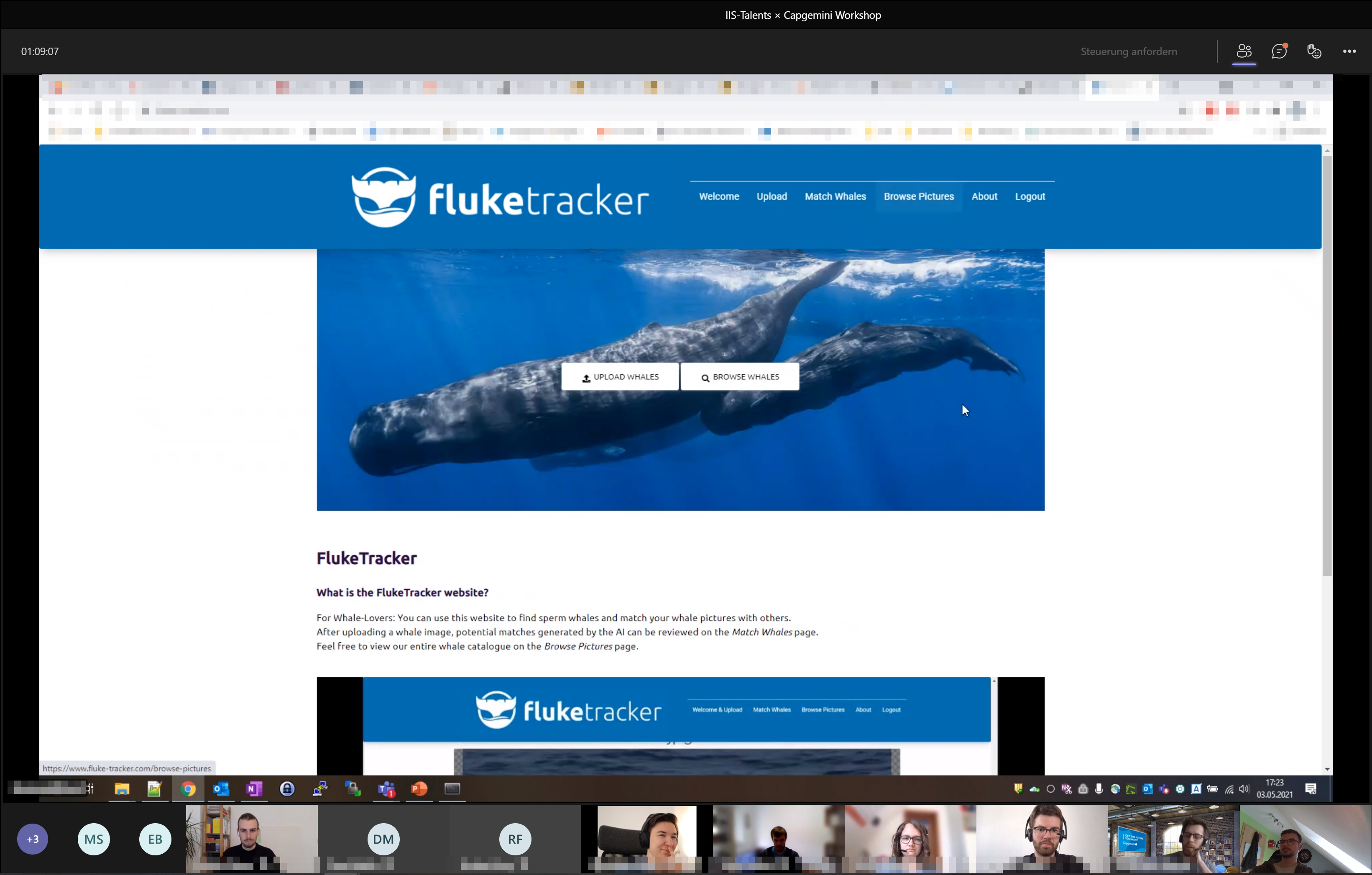 Der Kunde war in diesem Fall Lisa Steiner. Die Meeresbiologin forscht auf den Azoren im Bereich der Pottwale. Diese werden anhand von Fotos von ihrer Fluke (so heißt die Heckflosse der Wale in der Fachsprache) verglichen. Es sollte nun also ein IT-Unterstützungssystem entwickelt werden, welches Lisa bei ihrer Arbeit helfen sollte.