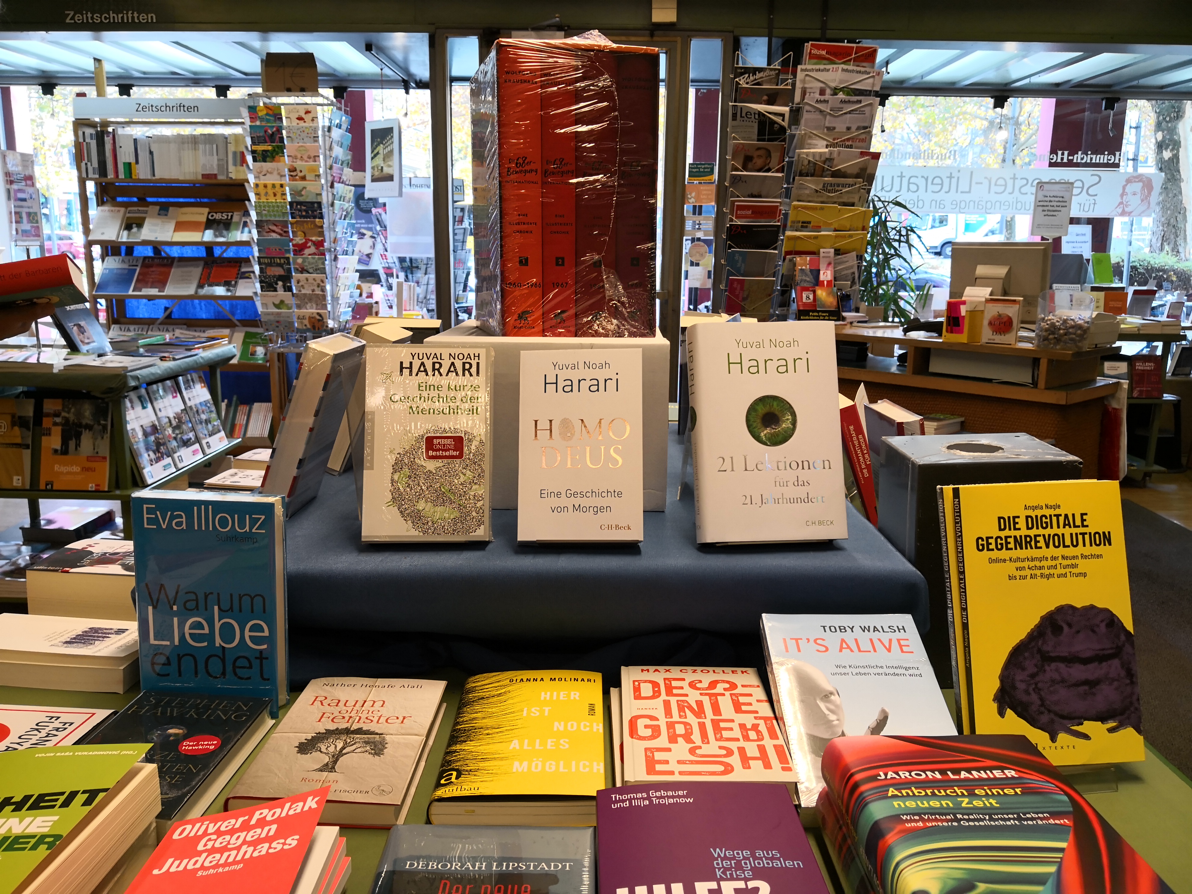 "Am 06.11.2018 traf sich der Lesekreis „IIS-Reading-Corner“ in der Heinrich-Heine-Buchhandlung um Yuval Harari´s Homo Deus zu besprechen. Bei einem Gläschen Wein wurden in einer niveauvollen Diskussion zusammen mit Prof. Schütte viele Standpunkte des Autors aus verschiedenen Perspektiven betrachtet. So standen unter anderem zur Diskussion die Annahmen die Harari getroffen hat, auf der er seine Argumentation aufgebaut hat, sowie der eigentliche Sinn den er mit der Veröffentlichung des Buches beabsichtigt hat. In einer abschließenden Feedbackrunde wurde festgehalten, dass wir beim nächsten Mal ein deutlich kürzeres Buch lesen möchte, das man auch über die Weihnachtsferien lesen kann, da wir uns Anfang Januar wieder treffen möchten. Als Vorschlag passend zu unserer Diskussionsrunde wurde uns von Kilian Fried (Heinrich-Heine Buchhandlung) das Buch Ist der Neoliberalismus noch zu retten? von Colin Crouch empfohlen. In dem nur etwa 80 Seiten langen Buch skizziert der Autor seine Gedanken zum Fortbestehen des Neoliberalismus. Durch das etwas politischere Buch soll das nächste Mal eine emotionalere Diskussion geführt werden. Wenn ihr über die Weihnachtsferien ein bisschen Zeit finden, um das oben genannte Buch zu lesen, sei ihr herzlich eingeladen an der Runde teilzunehmen. Wir freuen uns über euer Kommen!" (Timo Barske, WHK am IIS-Lehrstuhl und Koordination IIS-Readingcorner) Bei Interesse am Lesekreis "IIS-Readingcorner" schreiben Sie uns bitte eine Mail an iis.readingcorner (at) icb.uni-due.de, sodass wir Sie in unseren Mailverteiler aufnehmen können.Latest News: