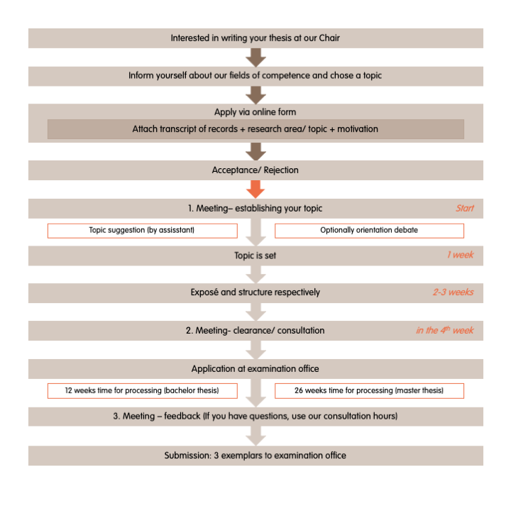 For the purpose of orientation, please find the standard procedure of writing a thesis depicted in the figure below.
