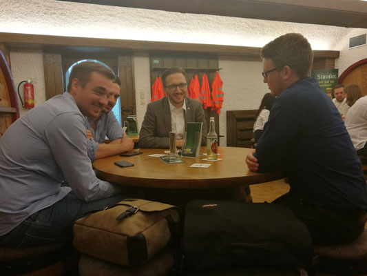 Zu guter Letzt sollten wir den ausgiebig studierten Gerstensaft natürlich auch in Ruhe probieren dürfen. In einem urigen Schankraum stand zum gemeinsamen Ausklang ein Buffet mit deftiger Hausmannskost bereit, zu dem, je nach Geschmack, Stauder Pils, Fassbrause oder Malzbier gereicht wurde. Dies bot eine optimale Möglichkeit für die Studierenden, sich noch einmal in lockerer Atmosphäre mit den Kooperationspartnern auszutauschen und mögliche Fragen zu Abschlussarbeiten oder Einstiegsmöglichkeiten loszuwerden.