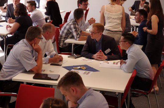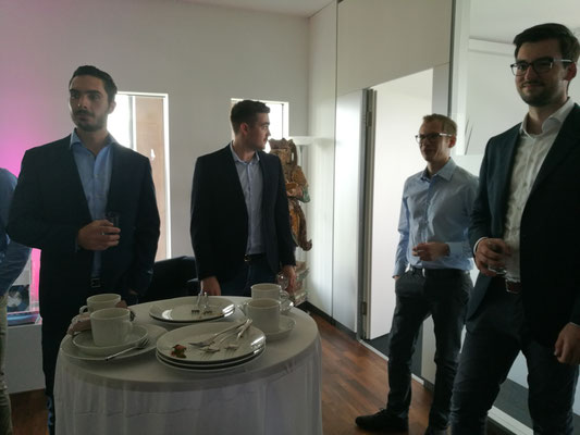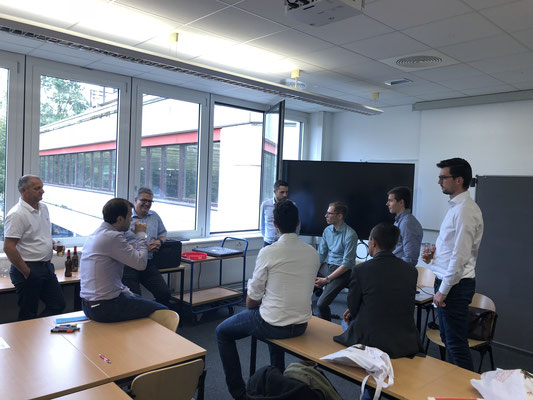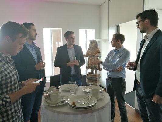 Nach den Präsentationen hatten die Studenten neben einem Snack und Kaltgetränken die Möglichkeit sich mit den Unternehmen auszutauschen. Hierbei gaben die Vertreter tiefe Einblicke in den Arbeitsalltag und aktuellen Themen. Die Vertreter waren sehr offen und freundlich, sodass über die eigene Zukunft, Berufsvorstellungen und den persönlichen Interessen in teils sehr intensiven Gesprächen diskutiert werden konnten.