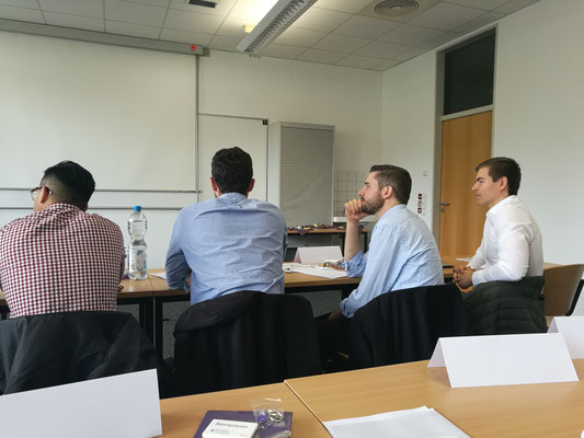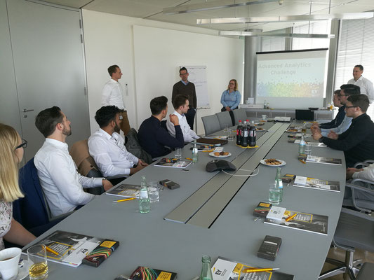 Nach der schönen Rundfahrt ging es vom Flughafen zurück zum Standort der PPI. Dort stellte Erik Purwins Beratungsansätze der PPI vor, um Unternehmen in einer sich schneller wandelnden Welt unterstützen. Danach wurden wir selbst als Berater gefragt. Im Rahmen der Fallstudie des Finanzdienstleisters war es unsere Aufgabe Lösungskonzeptionen für die Einführung des Vertriebscontrollings der Mayerbach AG zu entwerfen. Hierzu teilten wir uns in kleinere Beraterteams auf. Das erste Beraterteam befasste sich mit Einbindung der Quelldatensysteme und der notwendigen Datenarchitekturmodellierung. Darauf aufbauend entwickelte das zweite Team Kennzahlen und eine sinnvolle graphische Visualisierung im Report. Die dritte Gruppe befasste sich mit Potenzialen zukunftsträchtiger Technologien, um die Effizienz des Vertriebs der Mayerbach AG weiter anzuheben. Zuletzt sorgte sich das vierte Team um die Projektplanung und Aufwandsschätzung des Projekts, um ein entsprechendes Angebot an die Mayerbach AG zu formulieren.