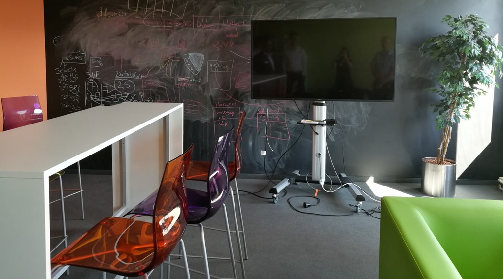 Nach einer kurzen, mit einem Quiz verbundenen Einführung über das Unternehmen wurde es für uns nun Zeit, einmal selber kreativ zu werden: Es ging darum, in Gruppen eigene und neue Geschäftsideen für sogenannte „Smart Poles“ zu entwerfen. Dabei handelt es sich um Straßenlaternen, welche auf verschiedene Art und Weise zu einer intelligenten Infrastruktur beitragen können. Beispielhafte Anwendungszwecke hierfür sind die Bereitstellung von Wi-Fi und die Anzeige von Werbung, Informationen für die Einwohner sowie Umwelt- & Wetterdaten. Nachdem wir uns in Gruppen zusammengefunden hatten, konnten wir uns nun in von innogy bereitgestellten Konferenzräumen „ausleben“ und Ideen sammeln. Nach dem jede Gruppe sich schließlich für eine Idee entschieden hatte war es nun die Aufgabe, die Idee vorzustellen und eine „Jury“ aus innogy-Mitarbeitern davon zu überzeugen. Im Vorfeld hatten wir allerdings noch die Möglichkeit, uns mit köstlichem Fingerfood zu stärken und mental auf die Präsentation vorzubereiten.