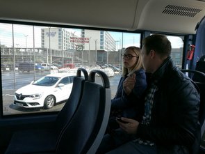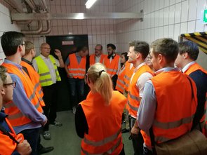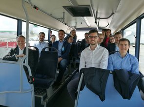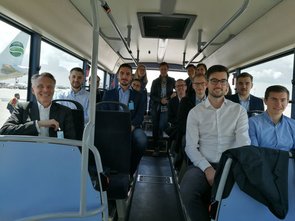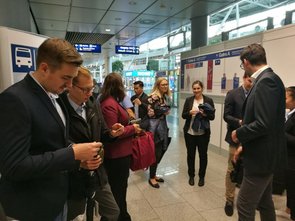 Wir trafen uns mit den Mitarbeitern Erik Purwins und Jens Diekmann in den Räumlichkeiten der PPI AG. Nach einem kurzen Kennenlernen machte sich unsere Gruppe auf zum angrenzenden Düsseldorfer Flughafen, wo wir an einer Airport-Tour teilnahmen. In Begleitung einer munteren Kindergartengruppe bestiegen wir einen Bus, der uns über das Flughafengelände fuhr. Nachdem alle Teilnehmer durch die Sicherheitskontrolle gekommen waren, fuhren wir direkt neben den parkenden Flugzeugen an den Terminals A, B und C vorbei. Während der Fahrt konnten wir einige Starts und Landungen beobachten. Der Busfahrer gab außerdem viele Informationen zum Flughafen, zur dort ansässigen Feuerwehr und zu den Flugzeugen.