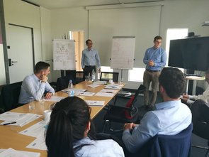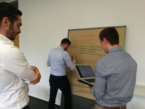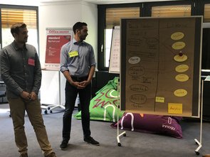 Zum Ende wollen wir uns die Ausarbeitung / Ideen gegenseitig vorstellen. Den Tag werden wir in einer lockeren Runde bei einem „Gläschen“ ausklingen lassen, in der Platz für weiterführende Gespräche ist." (Hagen Sprenger, Funktionsbereichsleiter Prognose- und Dispositionssysteme bei REWE Systems)