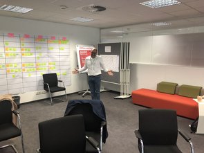 Dann wurden wir zum Thema des Tages – Agile Games geführt. Unter Begleitung von Herr Carsten Firus haben wir kleine Spiele zusammen bzw. in Gruppen gemacht, sodass wir Probleme und Fälle hinsichtlich der täglichen Arbeit erlebten. Dabei haben wir unsere inspiriert Ideen miteinander mitgeteilt.