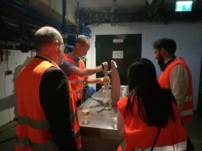 "Um das IIS-Talents-Programm im Sommersemester 2018 in einem geselligen Rahmen abzurunden, wurden die Studierenden und die Vertreter der Kooperationspartner zum Abschluss zu einer gemeinsamen Führung durch die lokale Privatbrauerei Jacob Stauder in Essen eingeladen. Nachdem wir im Verlauf des Semesters die zahlreichen Unternehmen an ihren jeweiligen Standorten besucht hatten, sah man viele bekannte Gesichter und in den entstehenden Gesprächen konnte direkt an die vergangenen Events angeknüpft werden.